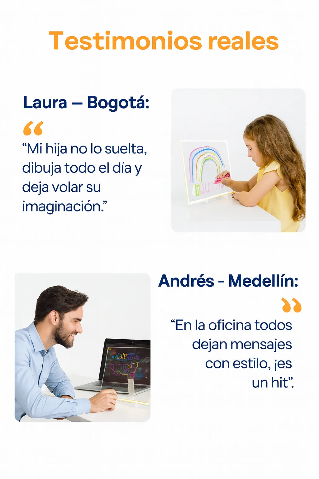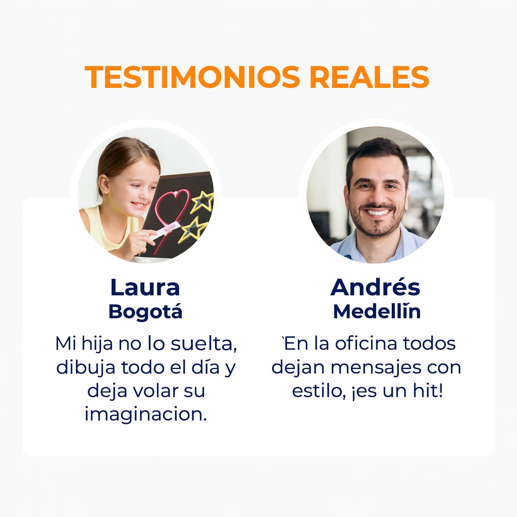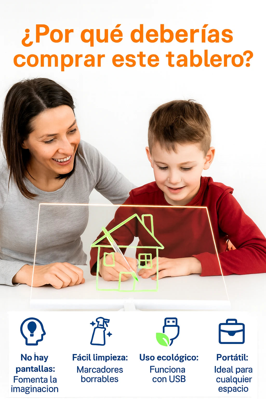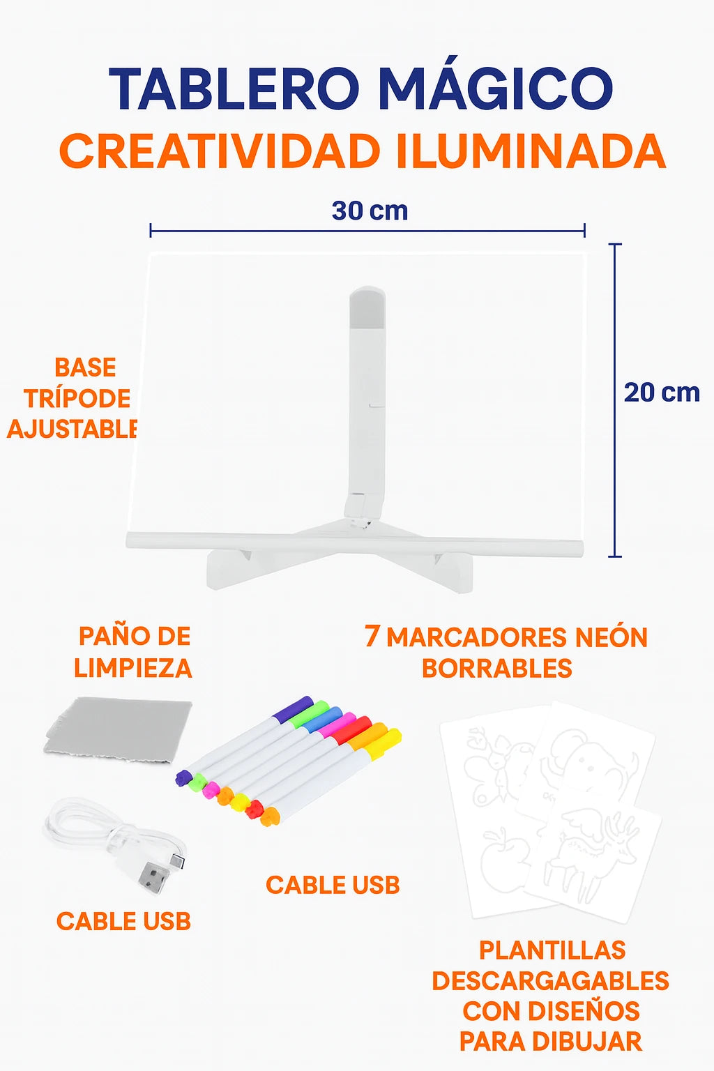 Tablero LED Neón 30×20 cm — ¡Creatividad Iluminada para Niños y Adultos!