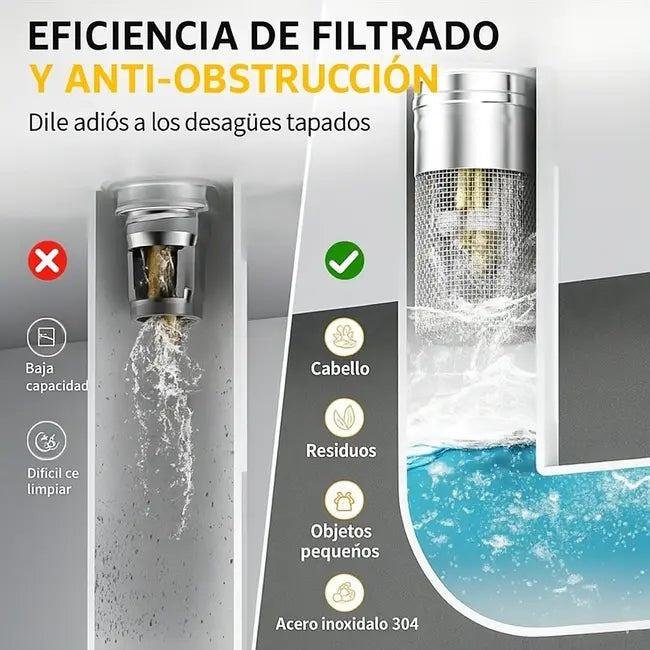 🍴🚿 Evita atascos de comida, cabellos y mugre.
